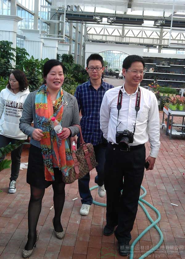 一下車,客人就被花園中心優美的自然環境所吸引,呂順清說,能在這樣的環境下工作對學生來說真是一種幸福。上午,呂順清等人先后參觀了占地4000平米的花園中心室內賣場和60000平米的室外賣場。室內賣場里,各類的植物搭配、布景及盆器、園藝資材等應有盡有,加上先進的設備管理,如此規模的賣場,在全國也是為數不多的。而室外賣場的蔭棚區里則云集了各式各樣的苗木品種。一路走來,呂順清不停地按著手中的相機快門,并對所見的一切贊不絕口。